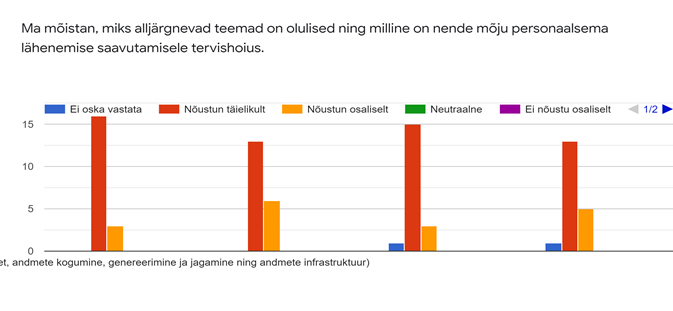 Rõõm oli tõdeda, et vastajad (v.a kõigest ühe erandiga) teavad täielikult või osaliselt personaliseeritud tervishoiu tähendust ja suudavad ka selgitada selle olemust.