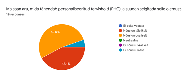 Rõõm oli tõdeda, et vastajad (v.a kõigest ühe erandiga) teavad täielikult või osaliselt personaliseeritud tervishoiu tähendust ja suudavad ka selgitada selle olemust.